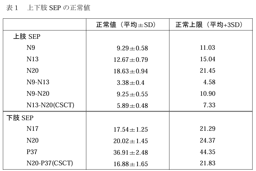 パラメータとして、潜時・振幅・中枢感覚伝導時間(CSCT:central sensory conduction time)などがある。